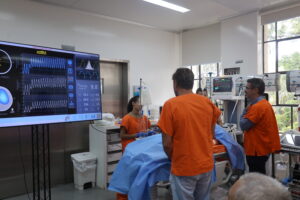 O Programa Saúde Digital Paulista realizou, em 1º de dezembro, a primeira parte de mais uma edição do Curso de Capacitação Imersiva de Ventilação Mecânica, reforçando seu compromisso com a qualificação contínua dos profissionais que atuam no modelo TeleUTI. A formação foi realizada no Laboratório de Investigação Médica (LIM) da Faculdade de Medicina da USP (FMUSP) e reuniu uma turma de quatro médicos e seis fisioterapeutas em um dia inteiro de teoria, prática e simulações realistas. A segunda parte dessa capacitação ocorre neste dia 15, também, com 10 alunos.