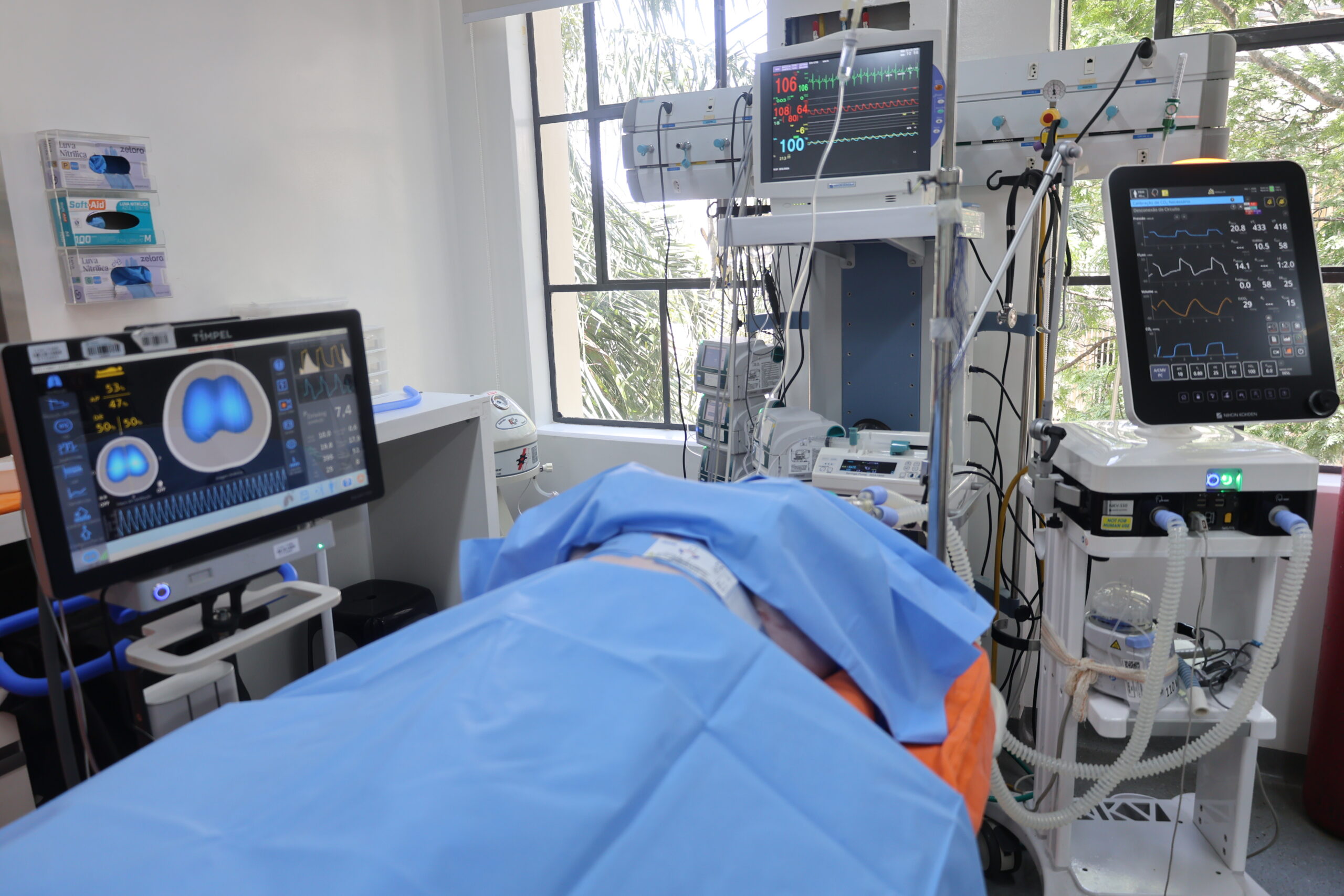 No período da tarde, o Dr. Eduardo Leite Vieira Costa conduziu as atividades ao lado do Dr. Marcelo Amato – Professor Associado e Livre-Docente da FMUSP; Diretor da UTI Respiratória do InCor/HCFMUSP; e Coordenador de Pesquisa Científica do Núcleo de Pesquisa da Rede Premium Multiusuário ME-04/LIM09 do HCFMUSP. Juntos, lideraram uma imersão prática com modelo animal, explorando estratégias avançadas de ventilação mecânica, como modos ventilatórios aplicados à SDRA, uso da tabela PEEP-FiO₂, diretrizes ARDSNet e ajustes de parâmetros conforme a mecânica pulmonar, incluindo a aplicação da posição prona.